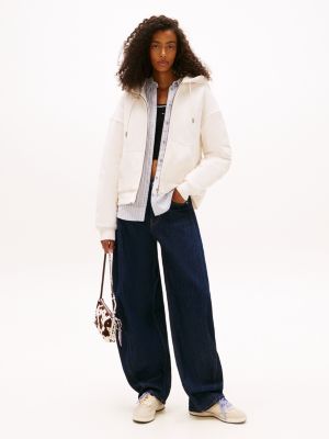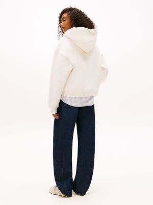 A garment-dyed finish gives this boxy zip-thru hoody a vintage vibe that's enhanced by tonal textured logos on the chest and back.
