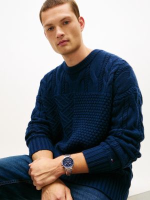 Blue Dial Stainless Steel Chain-Link Strap Watch