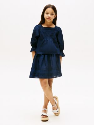 For an extra pretty feel, this breezy skirt features broderie anglaise tape and pintuck detailing around the hem.
