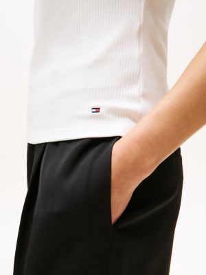The high crew neck and capped sleeves of this slim-fitting, ribbed T-shirt put a more sophisticated spin on an everyday essential.