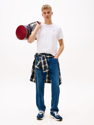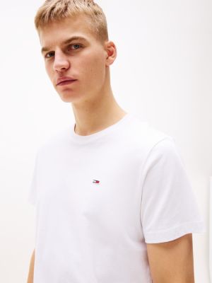 The slim fit of this tee creates a flattering profile for a contemporary look that transitions easily from day to night. A classic crew neckline ensures timeless appeal, making it a foundational piece for countless outfits. Crafted from lightweight pure cotton jersey, the T-shirt provides all-day comfort, supporting you during busy days or warmer weather. Subtle Tommy Jeans branding on the chest offers an understated nod to signature style, while the high-quality single jersey stitch gives the tee a premium feel. Ideal for layering under a hoody or wearing solo, this T-shirt is designed as a go-to staple for the style-minded individual.