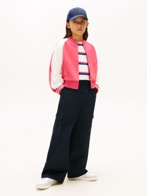 This varsity-style bomber jacket is decorated with logo embroidery on the back, while striped cuffs create an authentic sporty look.
