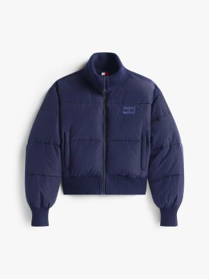 Bring varsity vibes to every day with this corduroy puffer jacket, cut in a relaxed silhouette with a cool shorter length.
