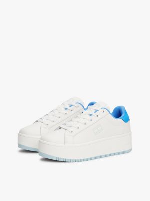 Turn heads in these statement platform trainers featuring patent detail on the contrasting heel counter, which matches the sole in colour.