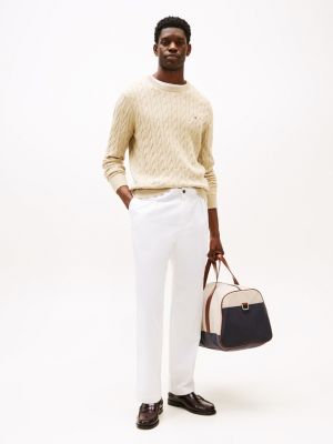 The traditional cable-knit pattern adds timeless appeal to this versatile jumper that's crafted from pure combed cotton and finished with flag embroidery.