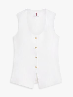 This sleek waistcoat is tailored in a slim fit from stretch linen-blend fabric and has been piece dyed for uniformity of colour.