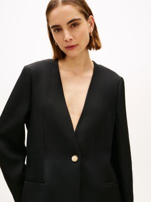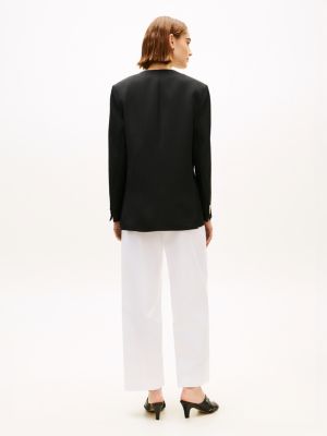 Complement formal styling with this opulent blazer cut from linen-blend twill, featuring an elegant collarless silhouette and flag-embossed gold-tone buttons.