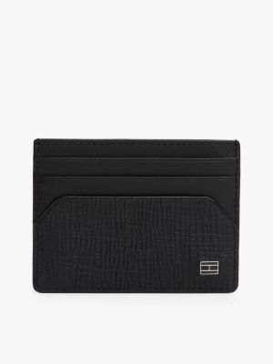Safely store your credit cards in this compact holder, crafted from textured saffiano leather and finished with a minimalist metal flag.