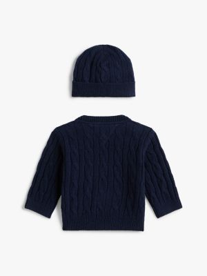 This gift box contains the perfect combo for cold-weather days, featuring a cable-knit jumper and a matching beanie for extra cosiness.