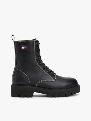 Bring a grungy edge to outfits with these lace-up leather boots, featuring modern cleated soles and zip closures for easy wear.