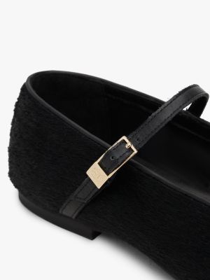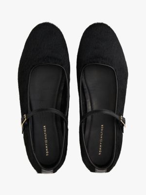 Add luxe texture to any outfit with these leather pony hair Mary Jane ballerinas, complete with a gleaming TH monogram buckle.