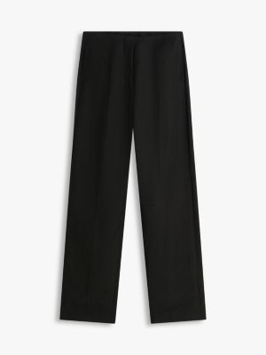 These tailored barrel-leg trousers are cut to a refined ankle-grazing length from linen-blend twill, finished with luxe metal flag detailing.
