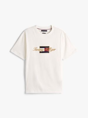 Metallic logo embroidery and weighty pure cotton jersey fabric bring a premium look and feel to this classic crew neck T-shirt.