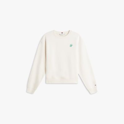 An embroidered script logo adds a touch of refinement to this classic sweatshirt made from a cosy cotton-blend flex fleece.