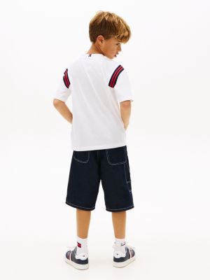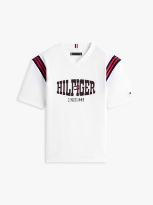 Bring a sporty feel to warm-weather wardrobes with this V-neck T-shirt, made from pure cotton jersey with bold branding in signature shades.