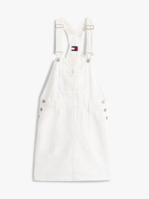 This mini denim dress is cut in a dungaree style, with a chest pocket and adjustable shoulder straps for a retro look.