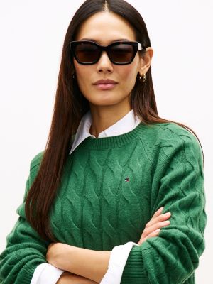 Bring vintage glamour to sunny-day outfits with these sunglasses, featuring metal flag branding and cat-eye lenses that add a touch of class.