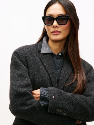 Bring vintage glamour to sunny-day outfits with these sunglasses, featuring metal flag branding and cat-eye lenses that add a touch of class.