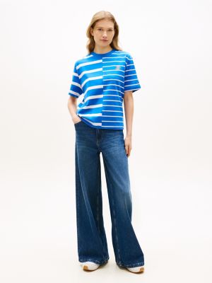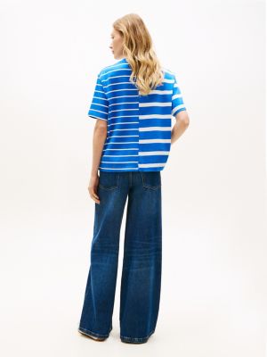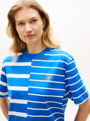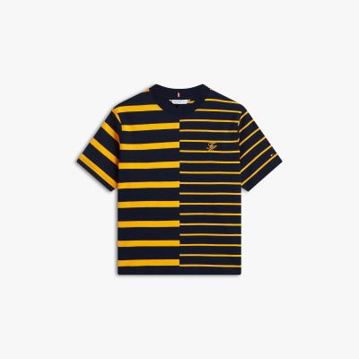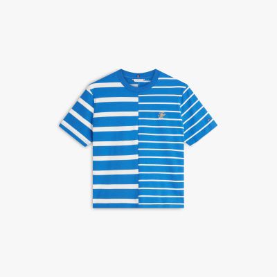 This T-shirt features a relaxed silhouette and a bold mixed stripe design, enhanced by script logo embroidery for a branded flourish.
