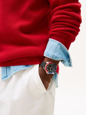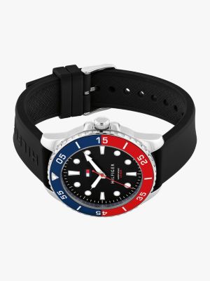 Embrace bold, sporty style with this watch, showcasing a branded silicone strap and an aluminium bezel in signature shades.