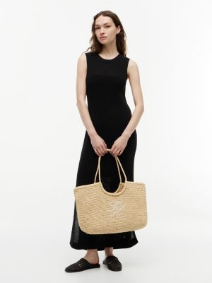 Raffia Textured Logo Tote Bag