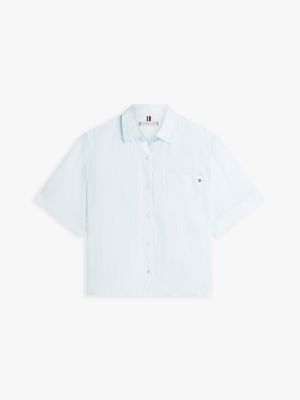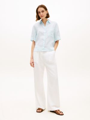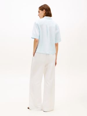 This relaxed-fit shirt is made from pure linen that's been yarn dyed to offer superior durability and is finished with flag embroidery.