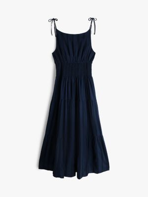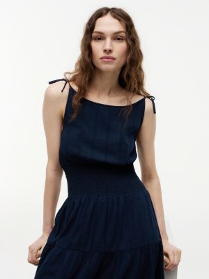 This midi dress is all about playful textures, crafted from a striped cotton-blend seersucker fabric and designed with smocking on the waist.