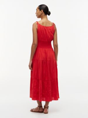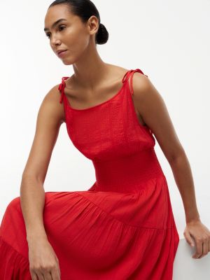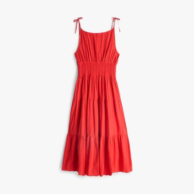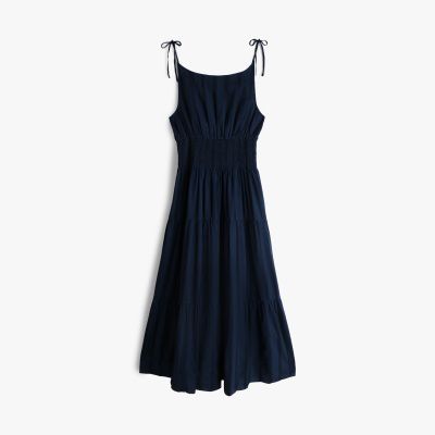 This midi dress is all about playful textures, crafted from a striped cotton-blend seersucker fabric and designed with smocking on the waist.