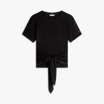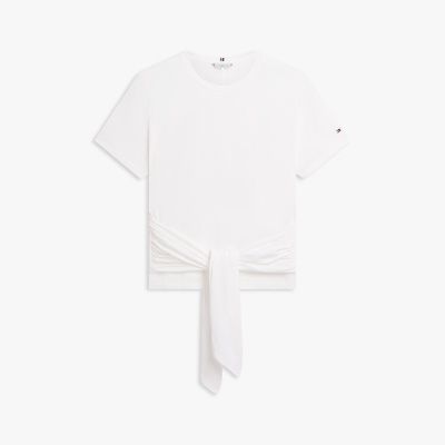 Add an eye-catching finish to your look with this textured jersey T-shirt, enhanced by a self-tie on the front.