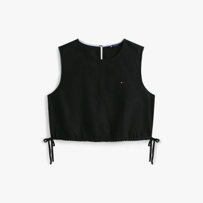 Bring a touch of feminine styling to your warm-weather wardrobe with this airy linen-blend blouse featuring tie detailing on the hem.