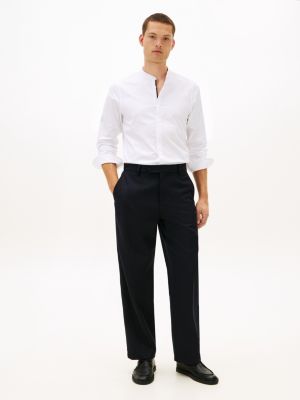 For refined smart style, choose this slim-fit shirt in pure cotton twill, minimally detailed with a sleek band collar and concealed placket.