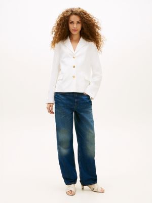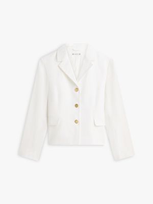 This sophisticated blazer in a stretch linen blend features a feminine slim fit, with embossed gold-tone buttons adding a touch of chic.