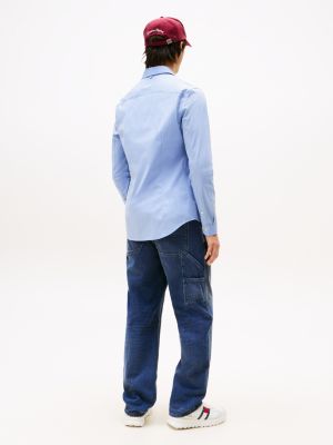 Designed in a contemporary slim fit, this shirt creates a clean, tailored silhouette that works seamlessly from workday to weekend. The advanced stretch fabric moves with you, ensuring comfort throughout busy days or relaxed evenings. Finely finished details, including a crisp collar and mitred button cuffs, reinforce its sharp, versatile character. The discreet Tommy flag embroidery on the chest adds an unmistakable touch of brand identity while maintaining a refined look. Poplin offers a light texture for an elevated finish. Perfect under a blazer or worn casually open over a tee, this shirt easily adapts to the demands of modern routines, delivering signature style with enduring ease.