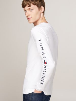 An embroidered logo on one sleeve and Tommy Hilfiger flag embroidery on the chest give this slim-fitting T-shirt signature flair.