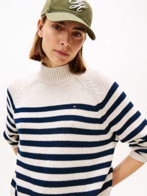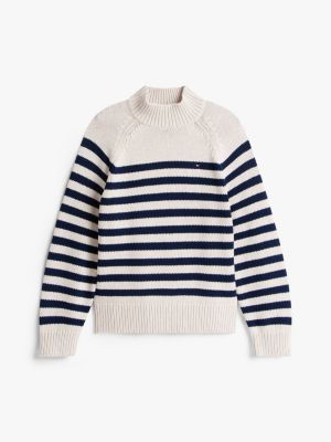 This striped pure cotton jumper offers a relaxed take on a classic design, with a mock neck and raglan sleeves.