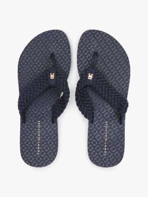 TH Monogram Crochet Wedge Flip-Flops